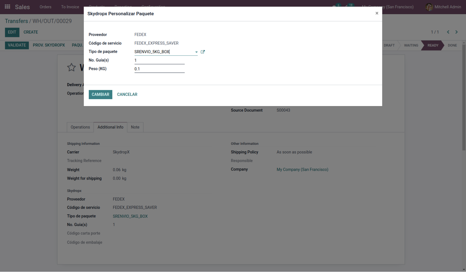 Si decides no usar SkydropX para este envío, simplemente cancela la operación y podrás elegir otro método de entrega.