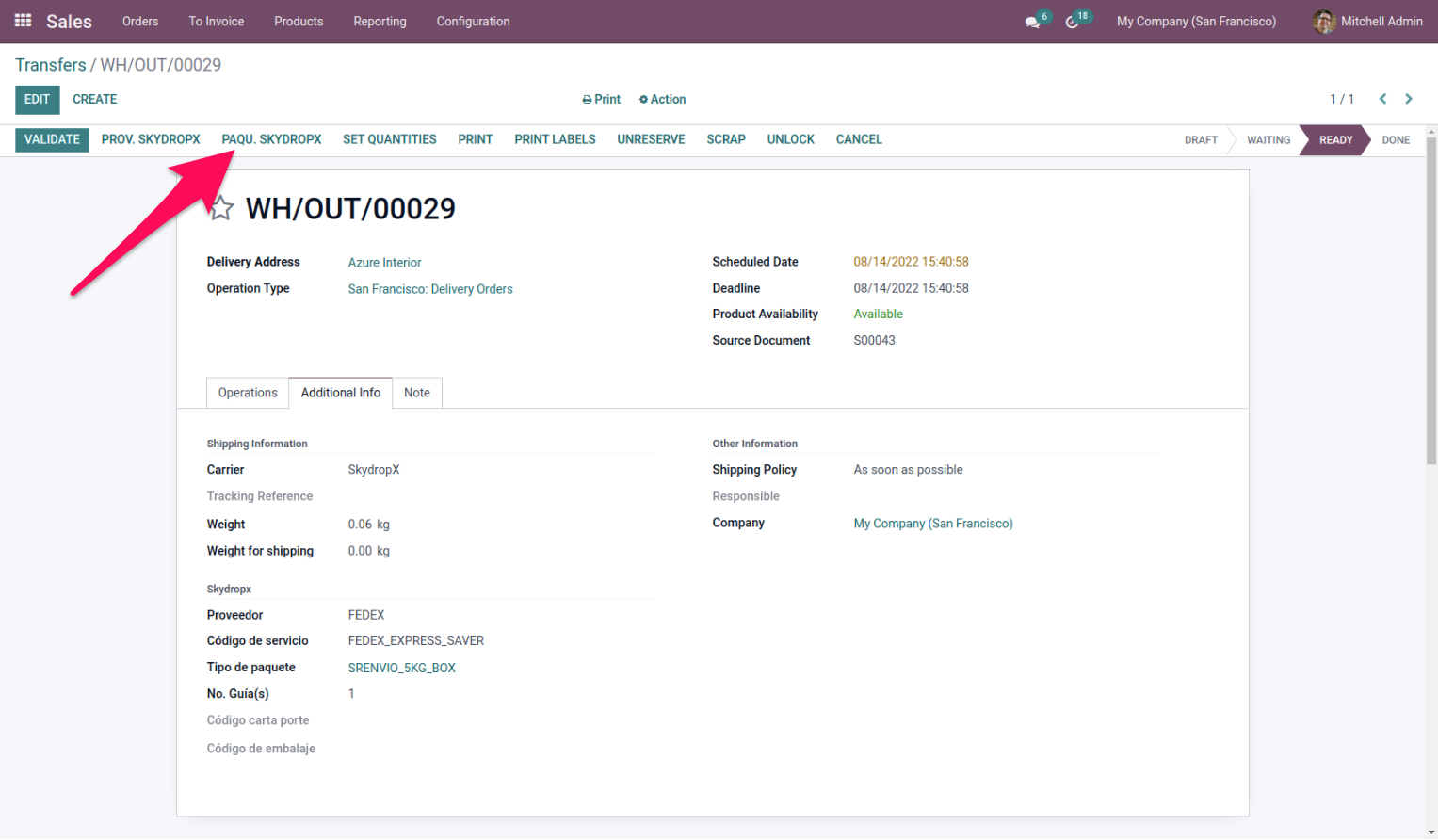 - Haz clic en el botón PAQU. SKYDROPX en la parte superior.