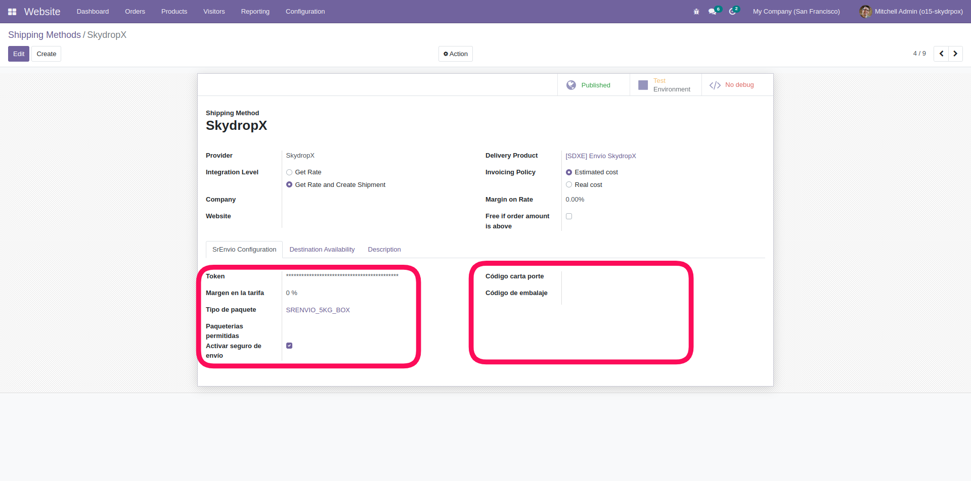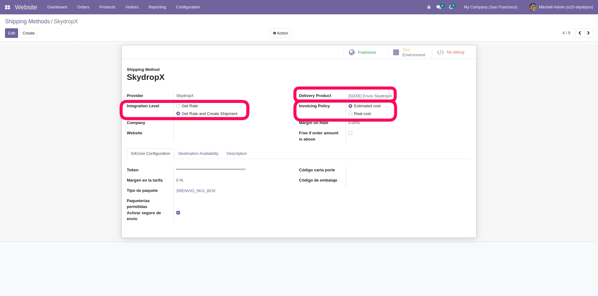 ¡Excelente! Ahora configuremos cómo se comportará SkydropX en tu Odoo.